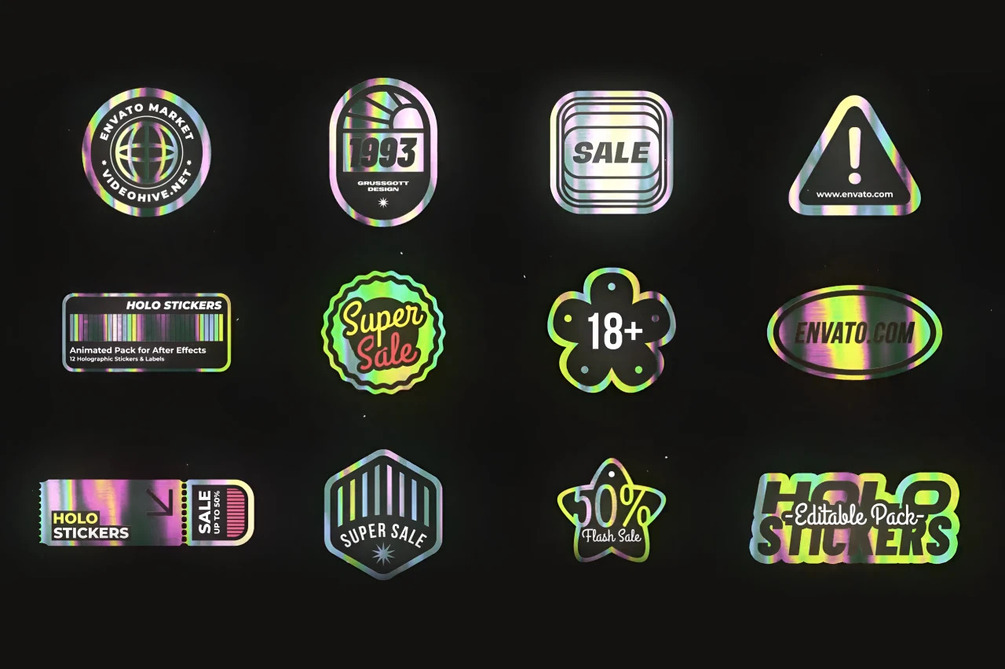 Animated Holographic Stickers & Labels Pack